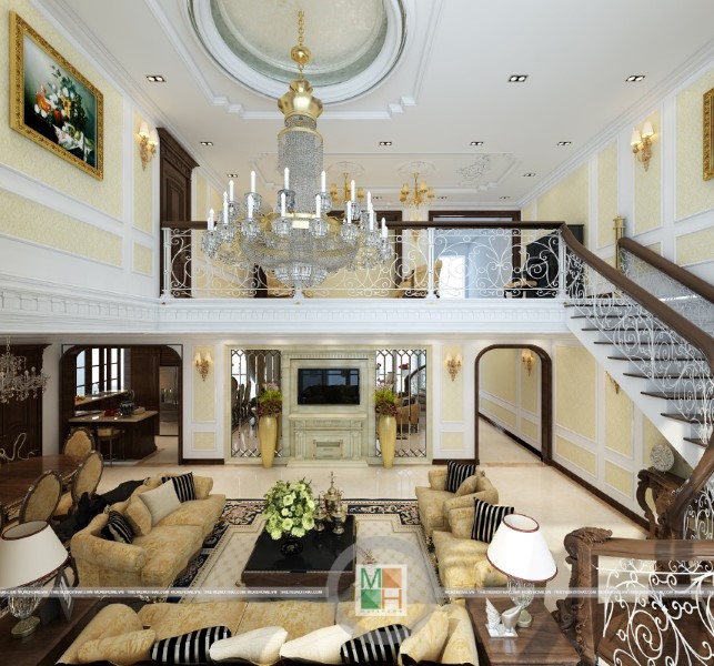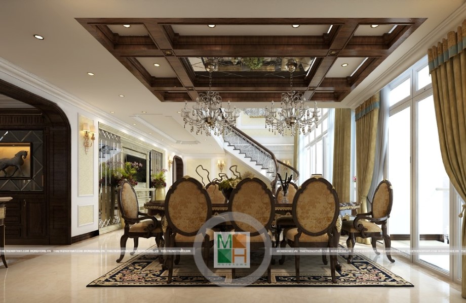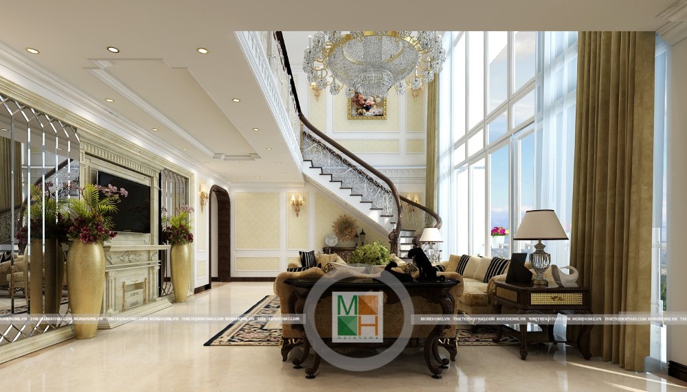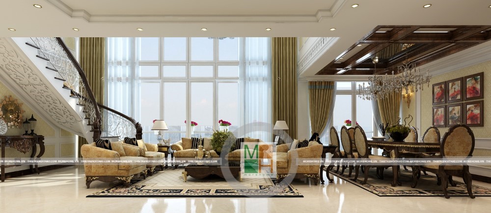 Cầu thang cổ điển tại chung cư DUPLEX MANDARIN cao cấp